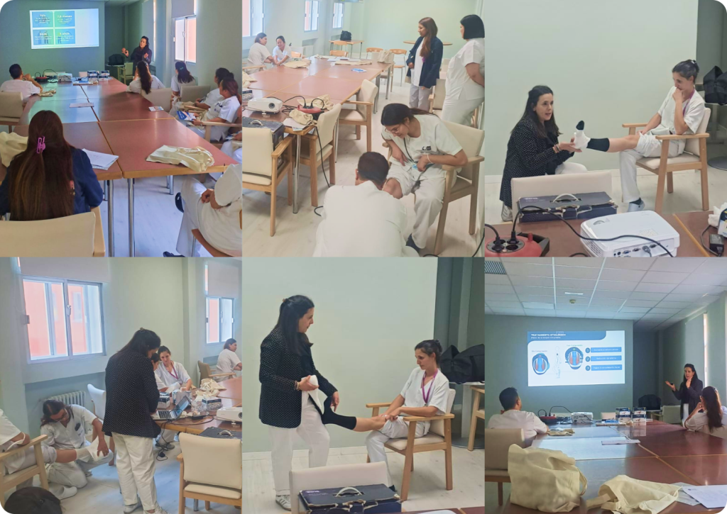 El pasado 22 de octubre, Hestia Health Madrid organizó una jornada de formación dirigida al equipo de enfermería, impartida por Urgo Medical. La jornada se centró en el manejo de la terapia compresiva para pacientes con úlceras venosas de pierna, e incluyó una presentación teórica sobre fisiopatología y tratamiento, seguida de un taller práctico para poner en práctica los conocimientos adquiridos.